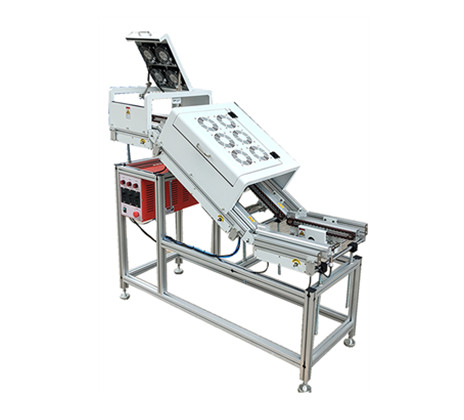 動力:上下平軌道采用15W斜面采用25W齒輪減速電機(jī)電子無級調(diào)速,可調(diào)至與波峰同步運(yùn)板速度。電控:上平層平面軌道和斜面軌道采用電子調(diào)速器控制電機(jī)+手動開關(guān)控制風(fēng)扇工作;下層軌道需配有smema信號和2個光電傳感器及單片機(jī)控制,斜面軌道尾部配有阻擋氣缸并由平段求板信號控制,并設(shè)有卡板報(bào)警功能。