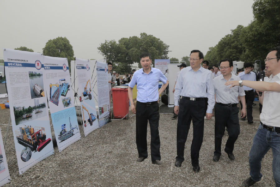 5月29日,江蘇省農(nóng)機(jī)產(chǎn)品推進(jìn)會在太倉現(xiàn)代農(nóng)業(yè)園舉行。江蘇省副省長繆瑞林參觀了省水機(jī)公司水利機(jī)械產(chǎn)品推介展區(qū),對水機(jī)公司大力開發(fā)環(huán)保清淤產(chǎn)品表示贊許。