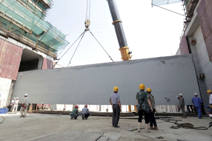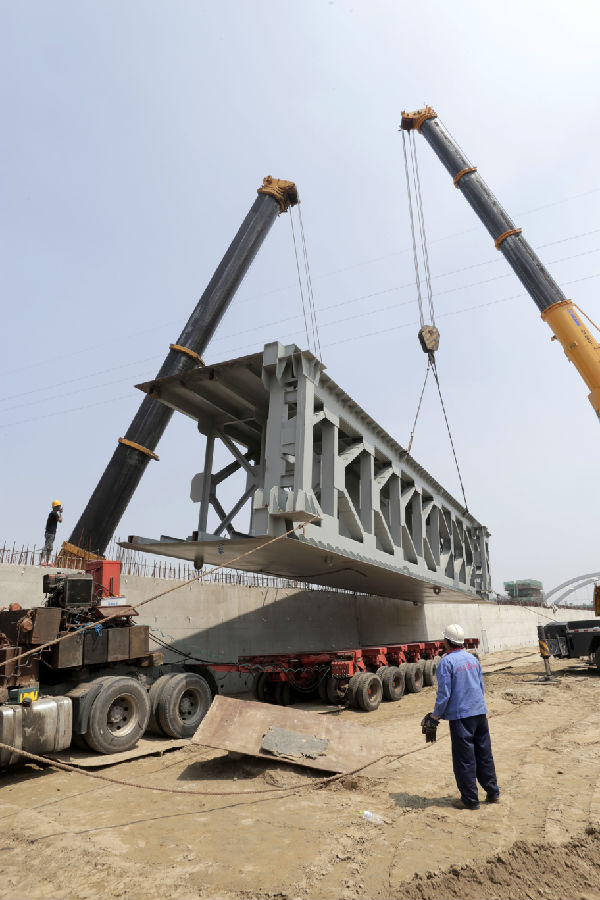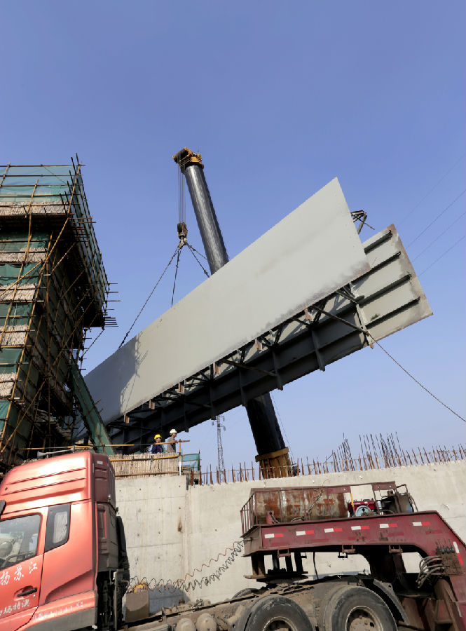 6月17日,由水機公司承建的芒稻閘項目上閘首閘門吊裝成功。閘門分兩片,單片重70噸,運輸、吊裝難度非常大,為此,水機公司組織精兵強將,認真查看運輸線路、吊裝位置,制定切實可行的預案。吊裝現場,隨著指揮哨聲的響起,兩輛運送閘門的大型平板汽車駛入指定位置,一臺500噸和一臺200噸的汽車吊緊密配合將閘門起吊、進行空中轉體、側向移位、斜插門庫就位一氣呵成,猶如體操運動員精準完美的表演。目前,下閘首閘門已完成制作進入防腐階段。