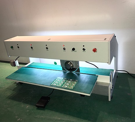 3. 切板過程中PCB不動,圓刀滑移,確保基板電子組件不因移動而損壞因應V槽深淺及刀具損耗,上圓刀與下直刀之間的距離可準確調整,可解決零件跨越V槽來實現分板;