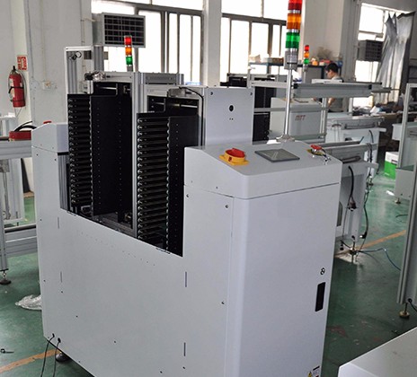 此設備可緩存檢測或SPI等檢查機出來的NG和OK板,OK板會流到下一個工序,NG板會流到本機上層輸送到本機等待人工確認。